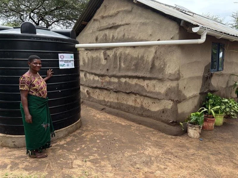 Ilmastokestävä infrastruktuuri: Hankkeessa asennettiin energiatehokkaita liesiä ja sadevesisäiliöitä kotitalouksiin, jotta naiset voisivat vähentää veden ja polttopuun hakemiseen käyttämäänsä aikaa.